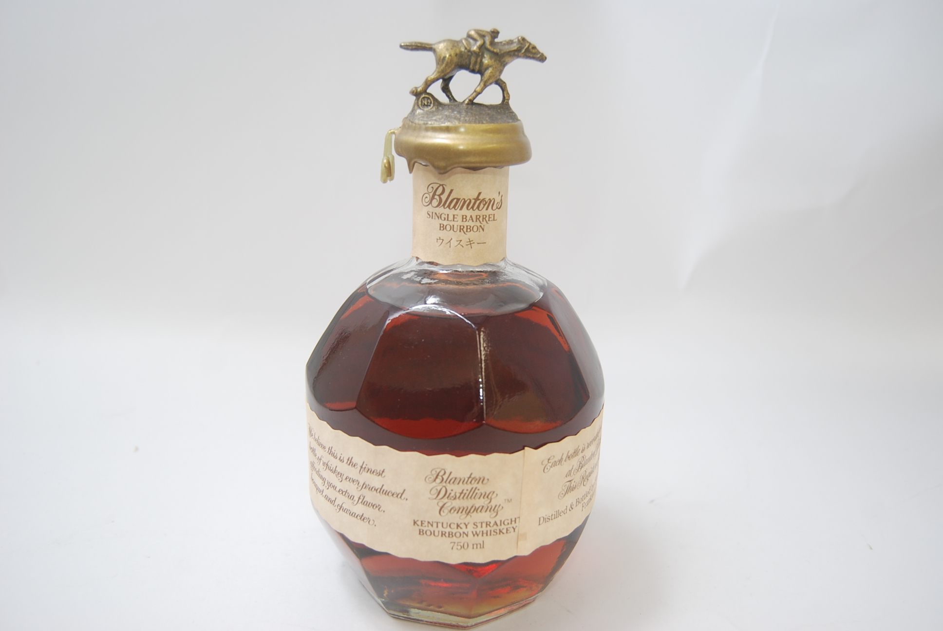 ブラントンのボトルは、非常に特徴的で、ひと目でその存在がわかるデザインです。丸いボトルの上部には、金属製のキャップがあり、そのキャップには、馬のフィギュアが付いています。このフィギュアは、バーボンの歴史とアルバート・ブラントンの精神を象徴しており、各ボトルのキャップには、馬が異なる姿勢で描かれています。このデザインは、コレクターズアイテムとしても人気があり、ボトルのキャップを集めることもウイスキー愛好者の楽しみの一つです。